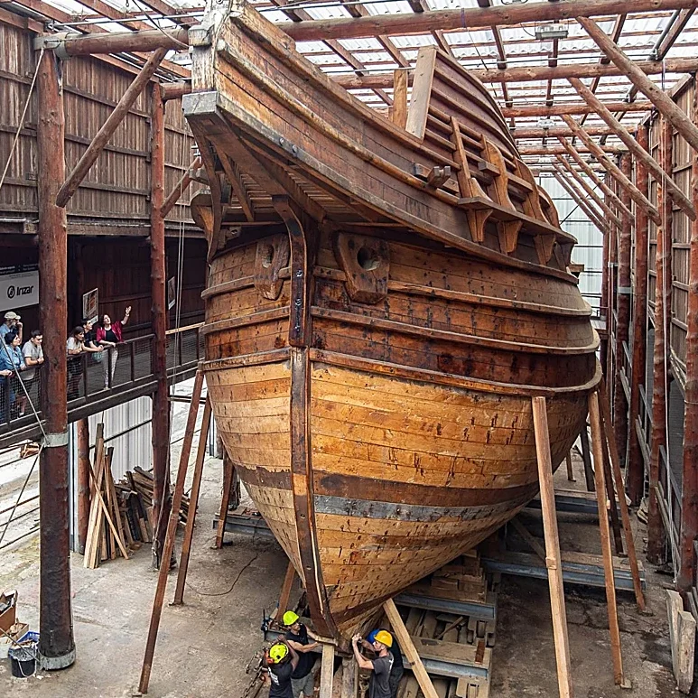 Botadura en la bahía de Pasajes de la reproducción de la Nao San Juan (ballenero vasco del s.XVI) por la asociación Albaola
